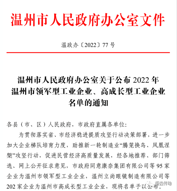 喜報|熱烈祝賀恒齒傳動榮獲2022年“溫州市高成長型工業企業”